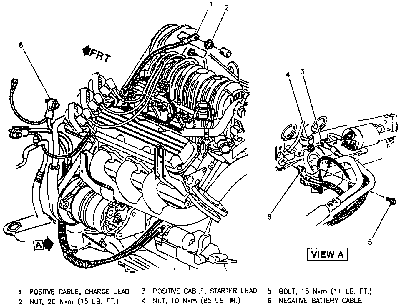 Whenever battery cables are replaced be sure to use a replacement cable that is the same type and length. Some positive cables have additional feed wires attached to them and some negative cables have additional ground leads attached.