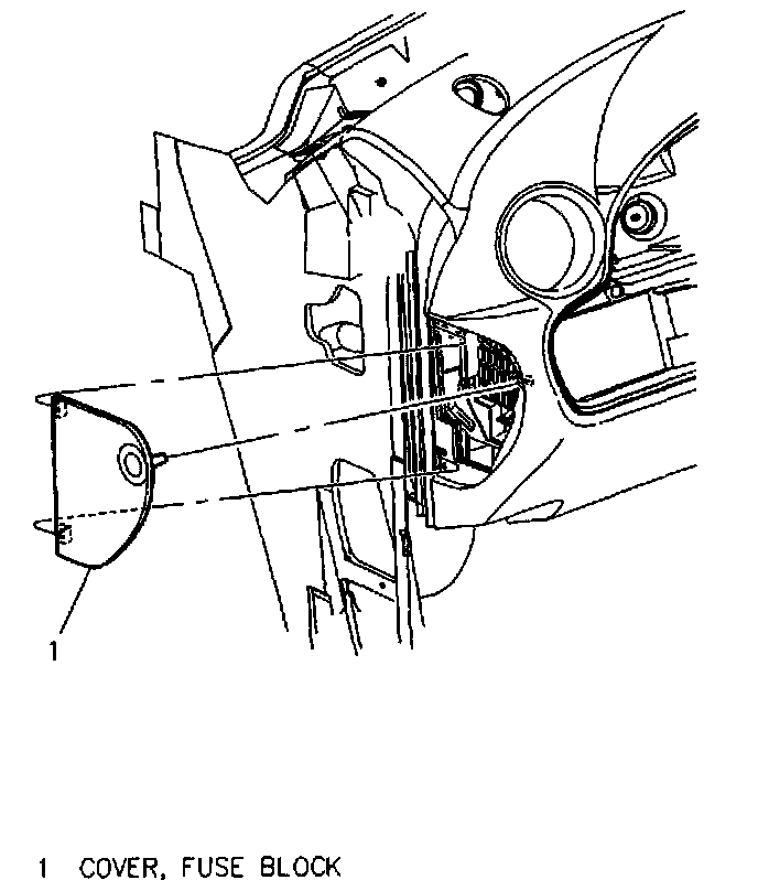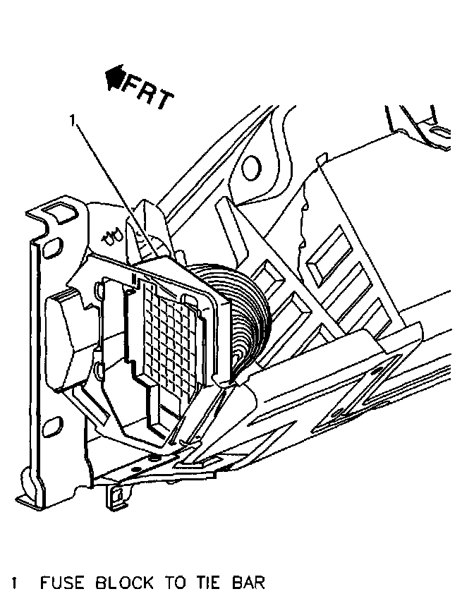 1. Depress tang on left side of fuse block and pivot out of bracket.