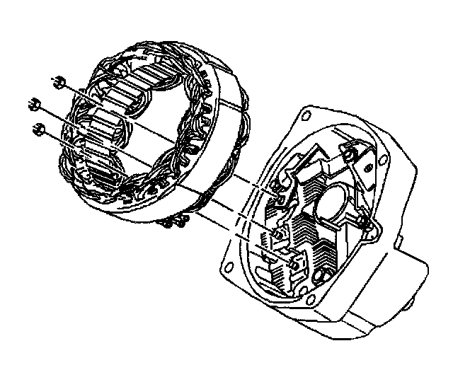 15. Place the stator terminals over the rectifier bridge terminals in order to assemble the stator.