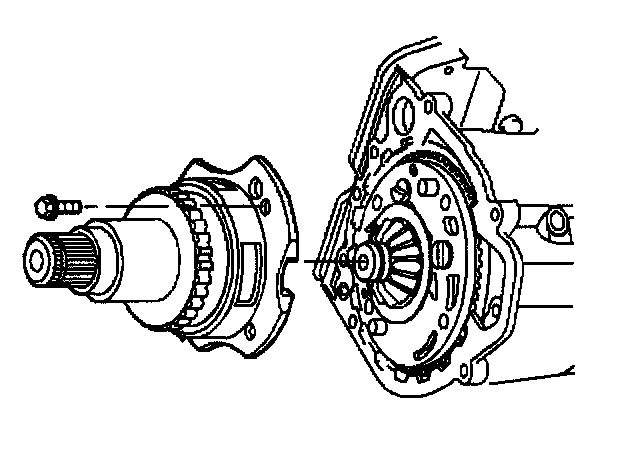 3. Using a torque wrench, remove the 4 differential housing bolts. The transmission must be in P (Park) with the differential locked in place. If you can rotate the differential, turn the manual shaft counterclockwise to the P (Park) position. The actuator rod will stick out of the case.