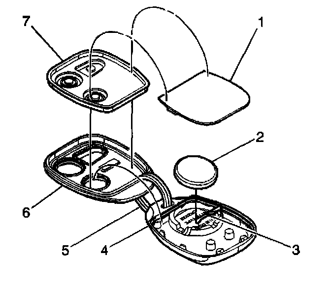 1. Insert a small coin between the two halves of the transmitter case at the slot provided near the key ring hole.