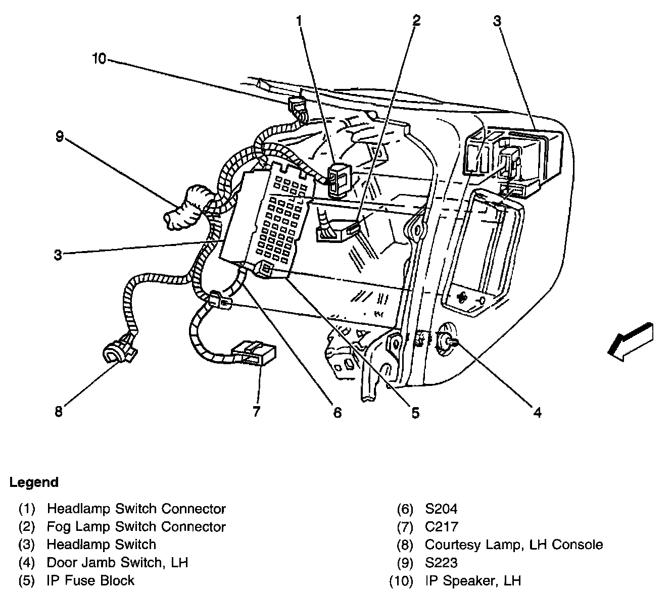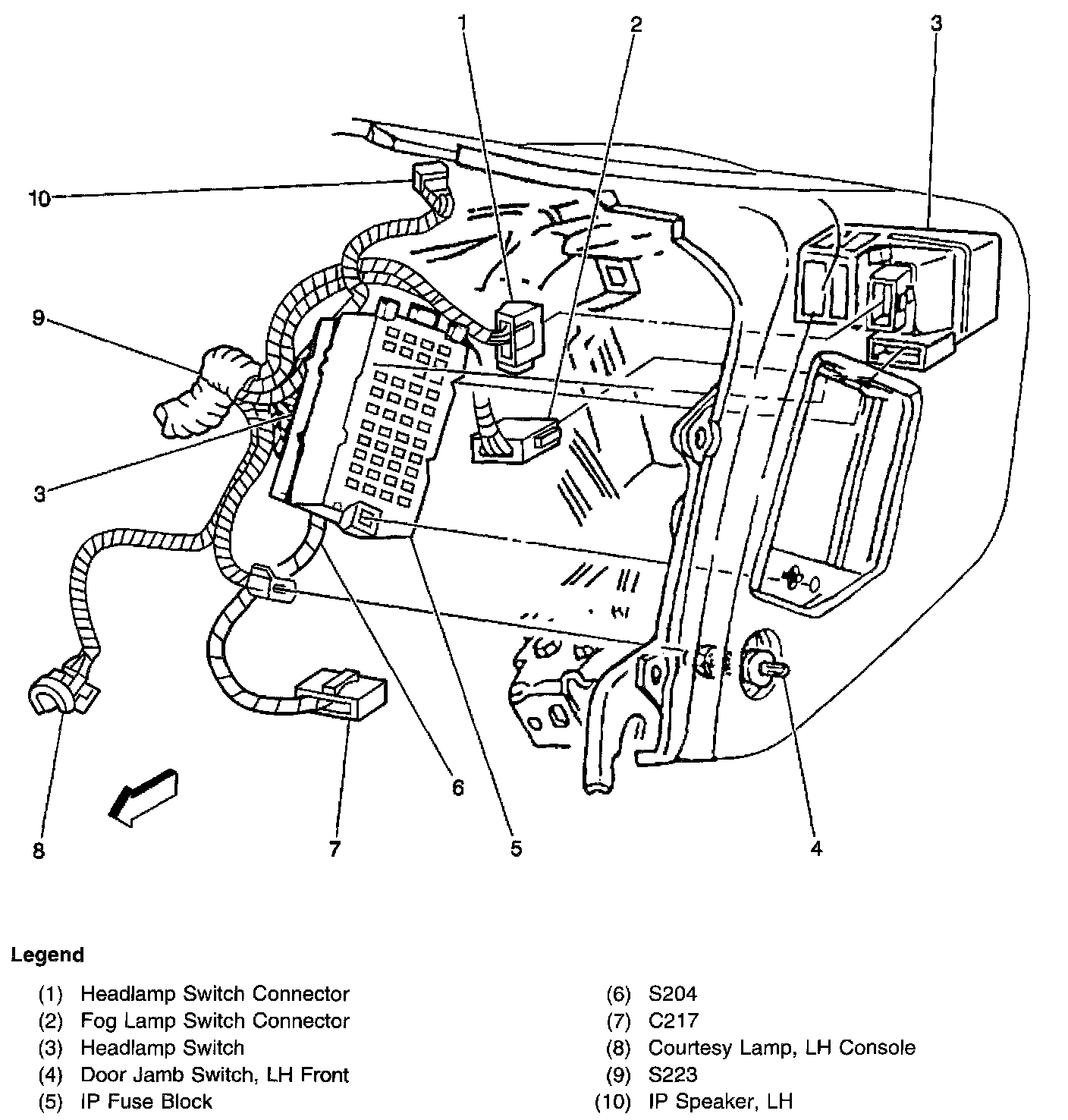 To the left of the IP, near the left front door jamb switch
