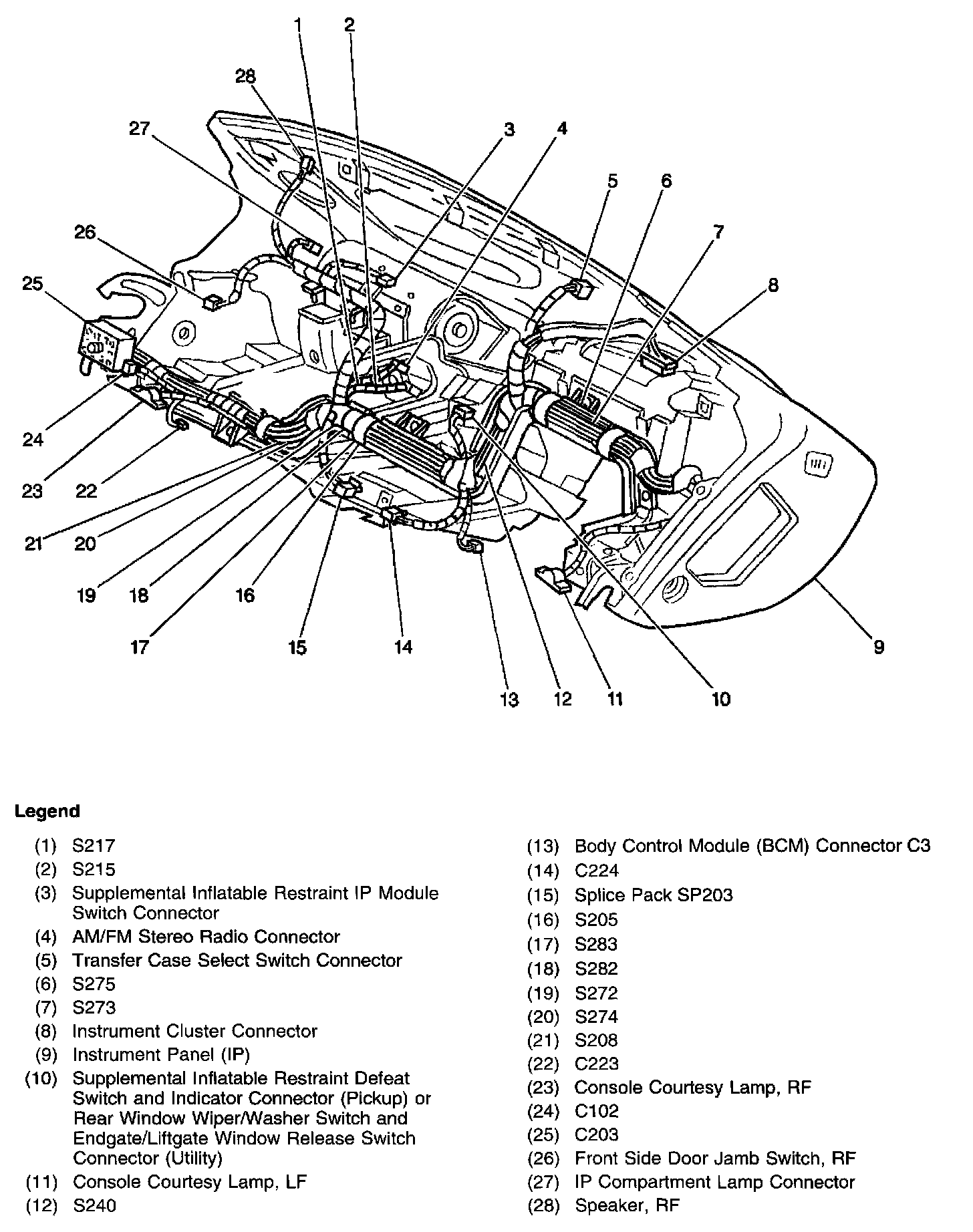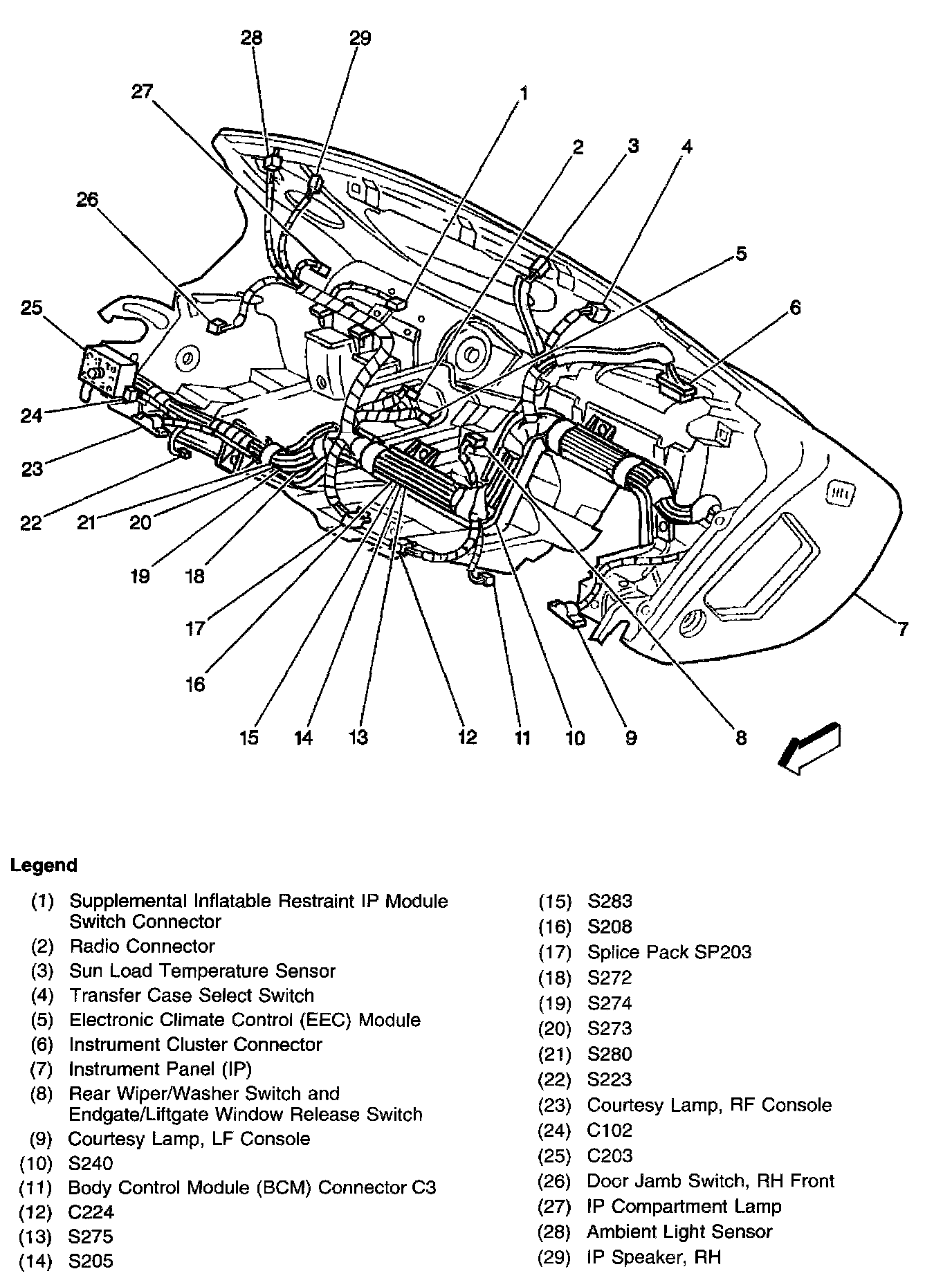 IP Wiring Harness Composite View (Without Auto A/C):