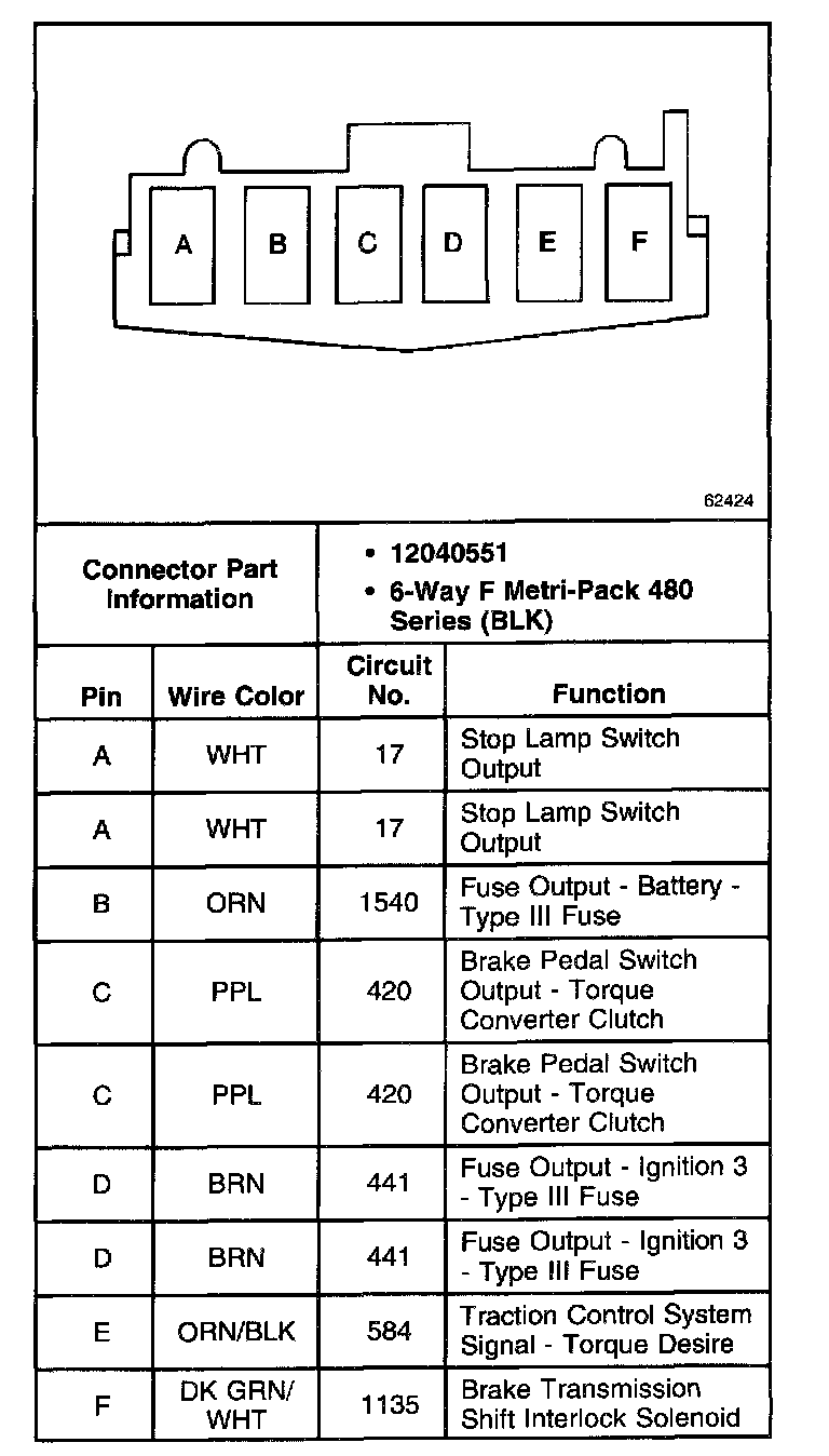 TCC/Stoplamp Switch Connector:
