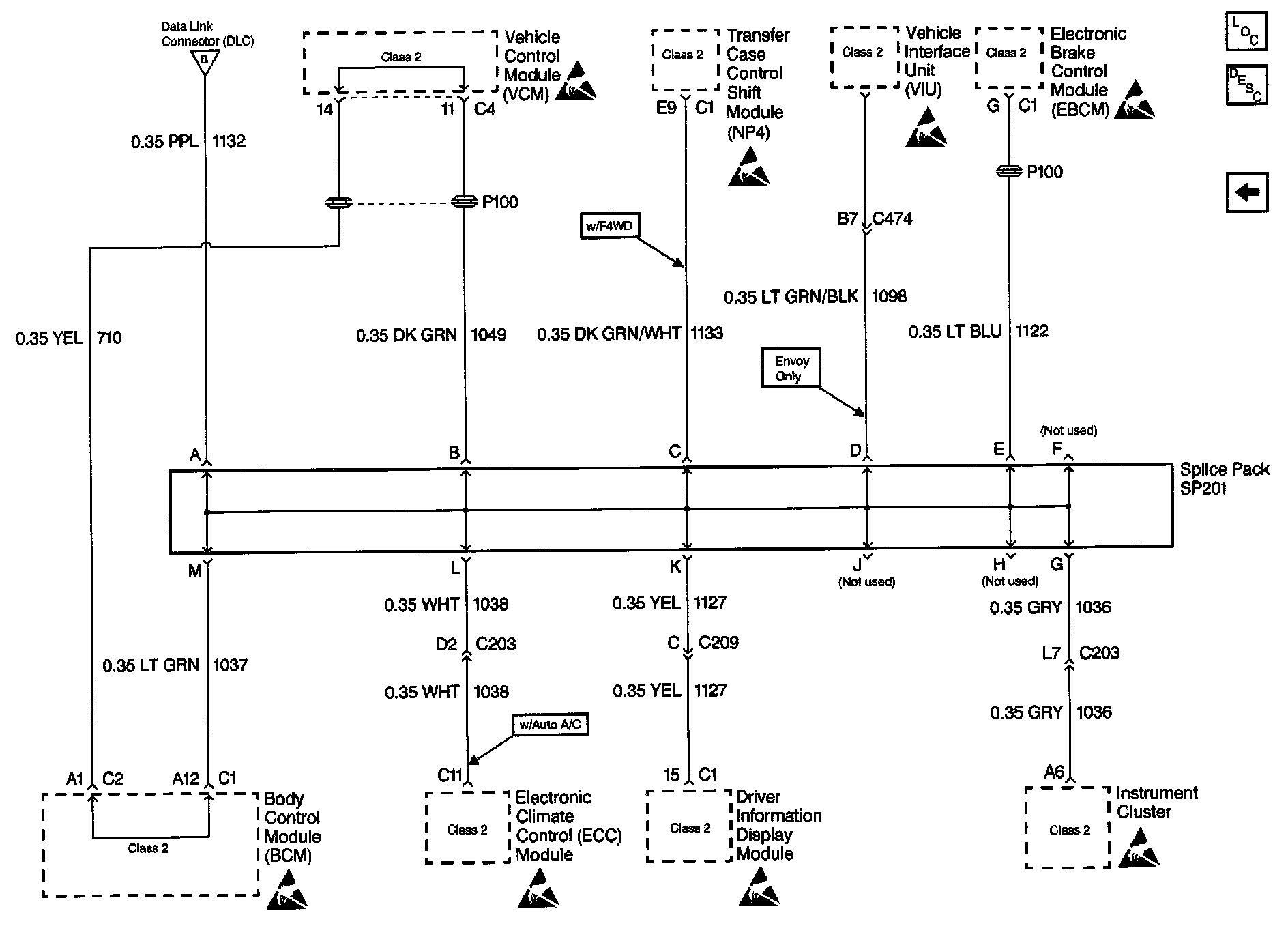 Data Link Connector (DLC) Schematics: Class 2 Communication (4.3 L):