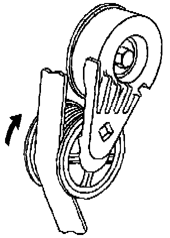 REMOVAL PROCEDURE1. Install a 3/8 inch drive wrench on the tensioner arm and rotate the arm counterclockwise.