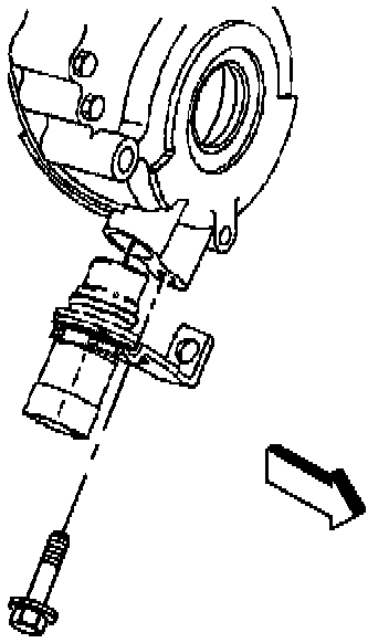 The Crankshaft Position (CKP) Sensor is located in the front engine cover and is perpendicular to the crankshaft target wheel. The air gap between the sensor and the wheel is preset and not adjustable. The target wheel has four slots 60 degrees apart and is keyed to the crankshaft. As the target wheel rotates, the slots passing by the sensor create a change in the magnetic field of the sensor which results in an induced voltage pulse. One revolution of the crankshaft results in four pulses (4x signal). Based on these pulses, the VCM is able to determine crankshaft position and engine speed. The VCM then activates the fuel injector and provides a spark to the Distributor. The relation between the crankshaft position sensor and the target wheel is crucial. The sensor must be exactly perpendicular to the target wheel with the correct air gap.