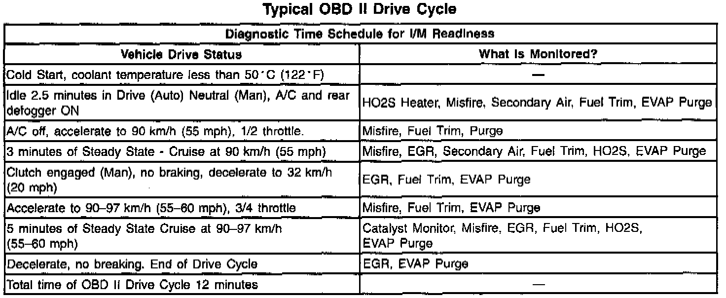 Important: The System Status display indicates whether or not a diagnostic test is completed. Diagnose and repair the system if any of the on-board diagnostic tests has failed the last test. Verify that all of the required diagnostic tests pass prior to returning the vehicle to the customer. Use the Typical Drive Cycle table as a guide to complete the System Status test associated with I/M.