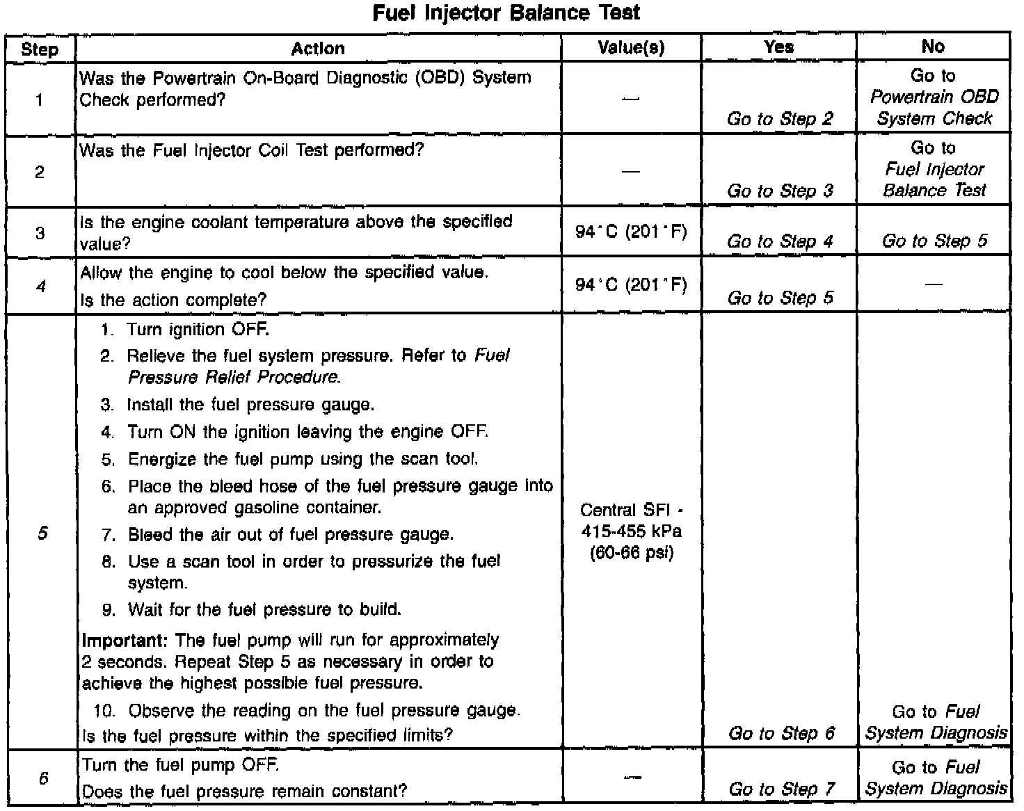 5. The fuel pressure should be within the specified range. It the fuel pressure is not within the specified range, go to Fuel System Diagnosis.