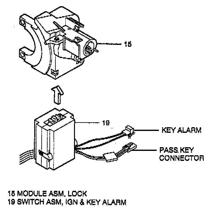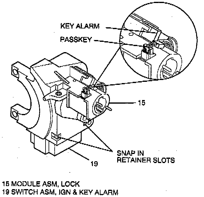 ^ Use small screwdriver to push on slots to remove ignition & key alarm assembly.