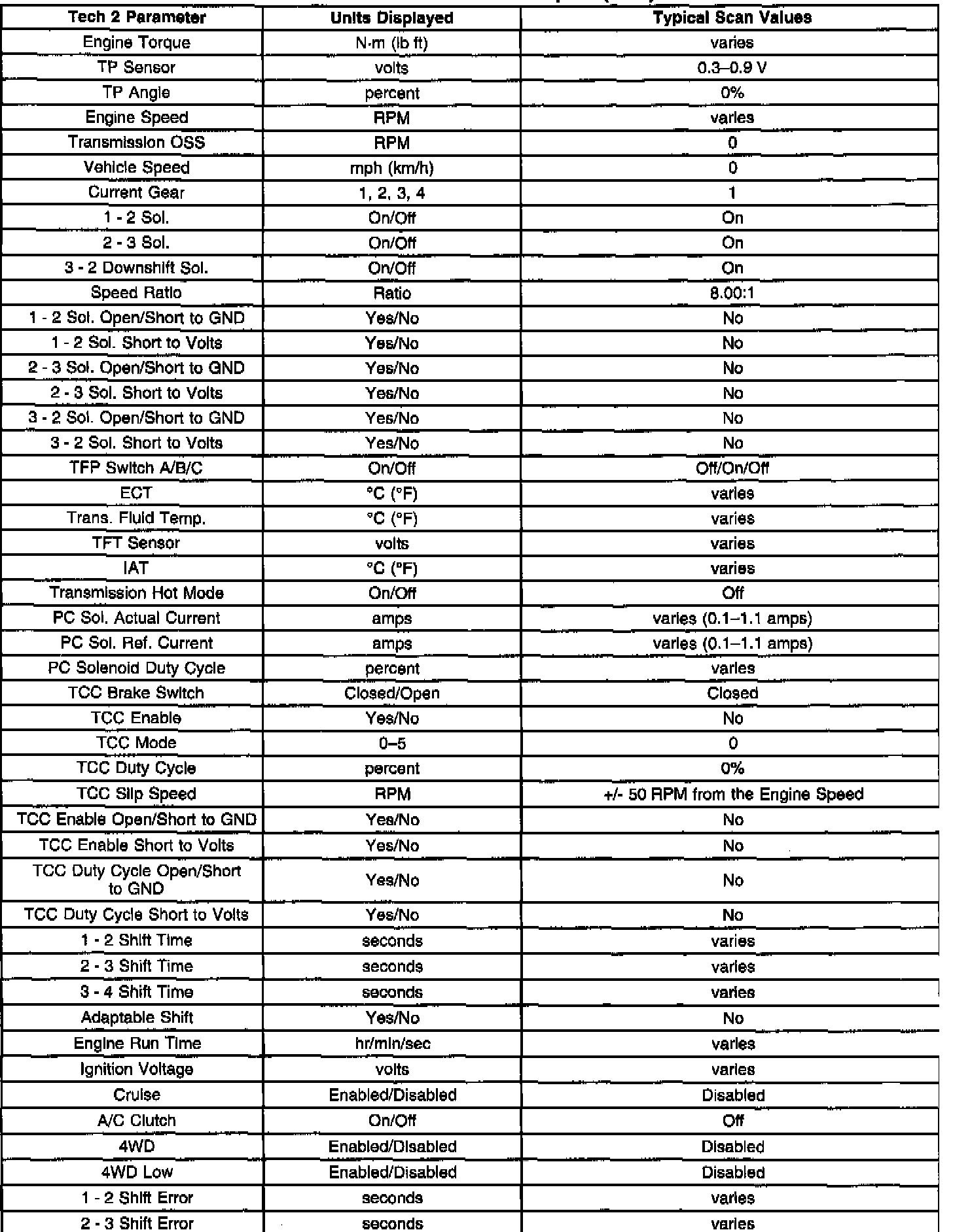 Only the parameters listed below are used in this manual for diagnosing. If a scan tool displays other parameters, the values are not recommended for use in diagnosis.