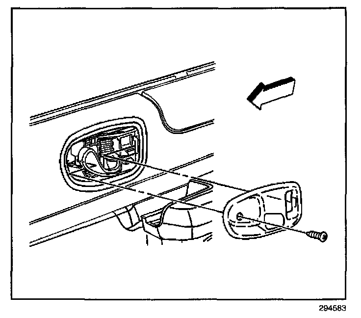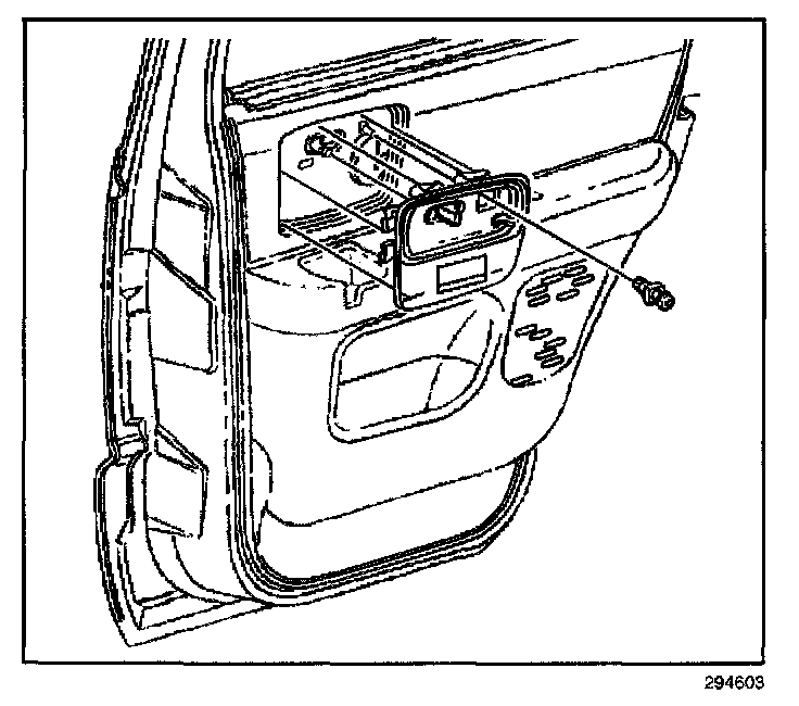 6. Insert the screw that retains the inside door handle bezel to the door trim panel.