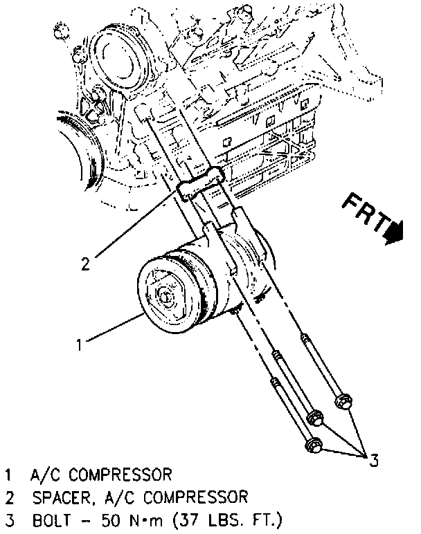^ Any repair to the A/C compressor or the A/C belt system will require loosening some A/C bracket bolts. To prevent future torque loss after re-tightening of these bolts, the bolt or stud should be replaced with an appropriate new bolt or stud OR apply Loctite� 242 or equivalent to the bolt or stud threads. Follow the package instructions for best retention.