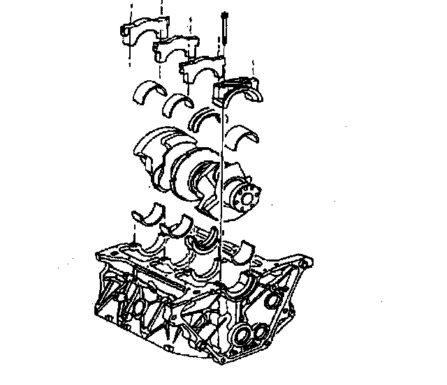 NOTICE: In order to prevent the possibility of cylinder block or crankshaft bearing cap damage, the crankshaft bearing caps ate tapped into the cylinder block cavity using a brass, lead, or a leather mallet before the attaching bolts are installed. Do not use attaching bolts to pull the crankshaft bearing caps into the seats. Failure to observe this information may damage a cylinder block or a bearing cap.