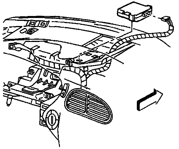 2. Release the remote control door lock receiver from the instrument panel by releasing the retainer tabs.