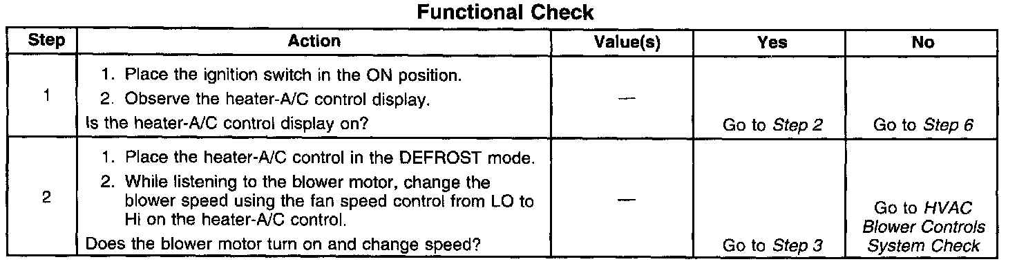 - The air conditioning blower motor operates at the appropriate speed with the control (mode) in any position except OFF. Verify that the compressor clutch also engages.