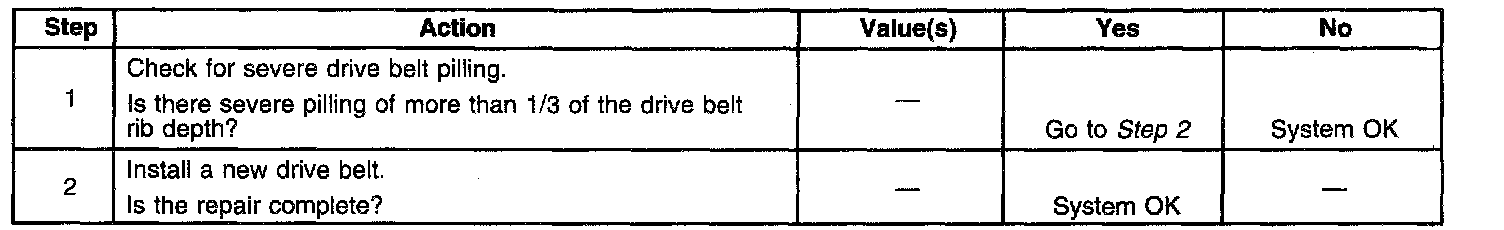 The thump or knocking noise easily misdiagnosis as an engine noise. In order to diagnose drive belt pilling, adhere to the following procedure: