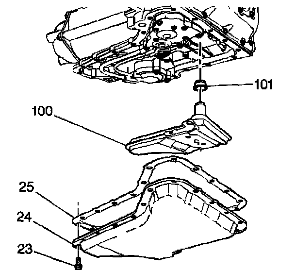 3. Install the gasket (25) and the oil pan (24).