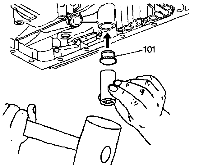 2. Remove the filter (100). Remove the lip ring seal pressed into the case only if replacement is necessary.