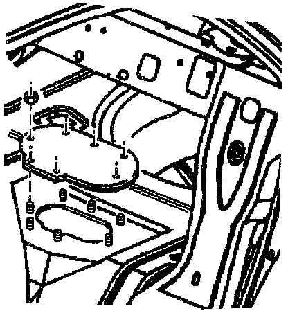 10. Install the (7) nuts retaining the fuel sender access panel.