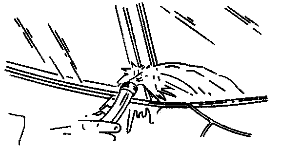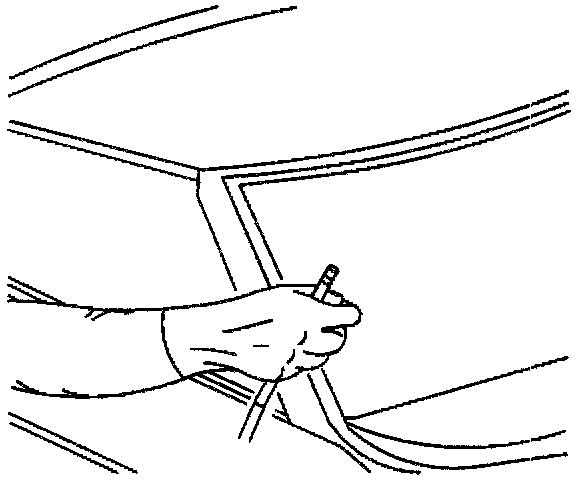 ^ If the urethane is not bonding to the pinch weld, clean the surface of the pinch weld, then prime the bare pinch weld with black primer #3.