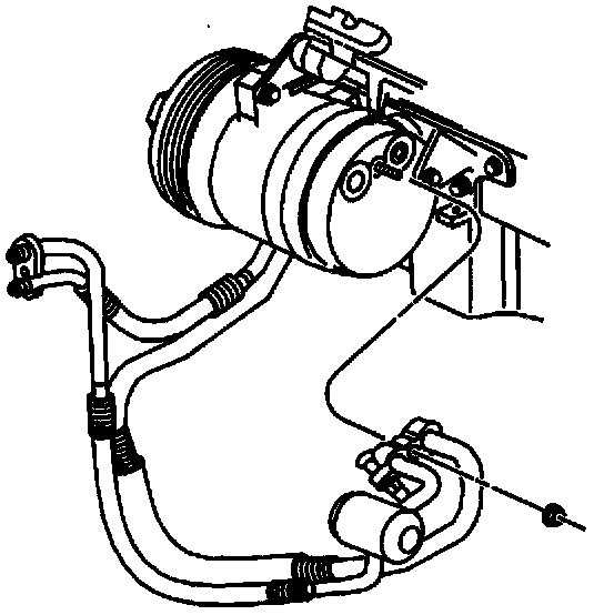 The A/C pressure sensor is mounted on the discharge line of the A/C compressor hose assembly. Its output to the PCM is variable and is dependent upon pressure inside the line. A higher pressure results in a higher voltage output. A/C pressure is constantly monitored to: