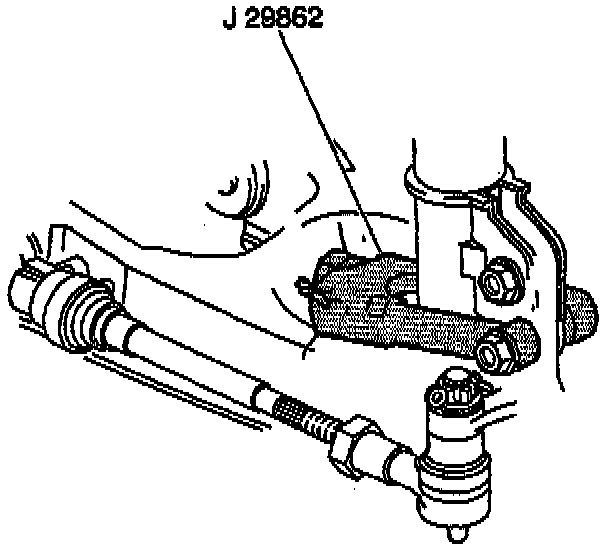 Tighten the strut to knuckle mounting bolts, using J 29862, to 190 Nm (140 ft. lbs.). Refer to WHEEL ALIGNMENT SPECIFICATIONS.