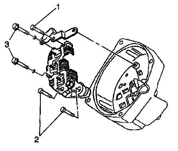 IMPORTANT: Ensure that the insulated bolt, located at the capacitor/rectifier bridge, attaches the capacitor strap and the rectifier bridge to the slip ring end frame. Make sure that the metal side of the capacitor strap is against the regulator connection.