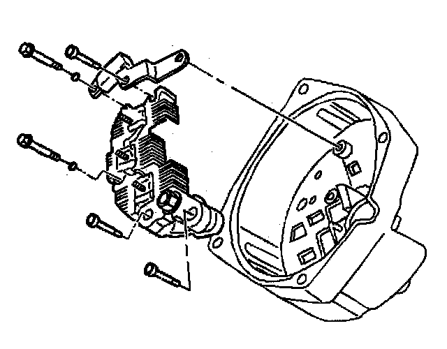 10. Remove the voltage regulator and the brush holder with the dust shield from the slip ring end frame as a unit.