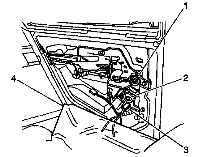Caution: If this procedure must be done with the regulator out of the vehicle, the counterbalance spring must be removed first. The regulator lift arms are under tension from the counterbalance spring and can cause serious injury if the motor is removed without removing the spring.