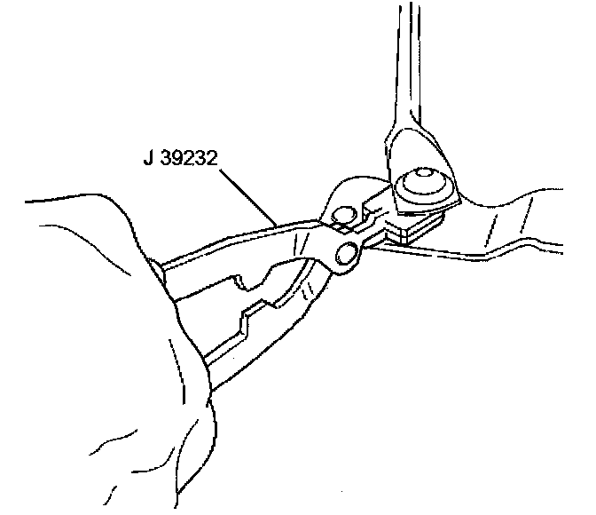 3. Disconnect the transmission drive link sockets from the wiper motor crank arm and the transmission drive shafts using the J 39232 Wiper Transmission Separator.
