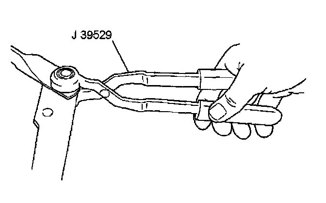 5. Install the transmission drive link socket to the wiper motor crank arm ball using the J 39529 Wiper Transmission Installer.