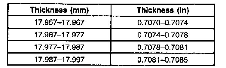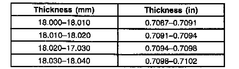 The oil pump assembly has a selective rotor, vane and slide components. These components are chosen based on pump body dimensions. Oil pump body, rotor, vane and slide components are available in four size classifications (1,2,3 and 4).Rotor, vanes and slide must be chosen in the same size classification to match the oil pump body. Allowable rotor, vane and slide end play to the oil pump body are as follows: