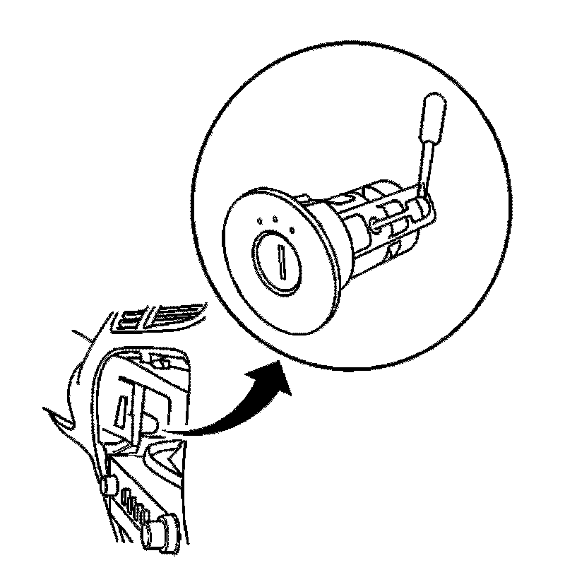6. If the ignition cylinder does not rotate or is seized, follow the procedure in the ignition switch replacement.