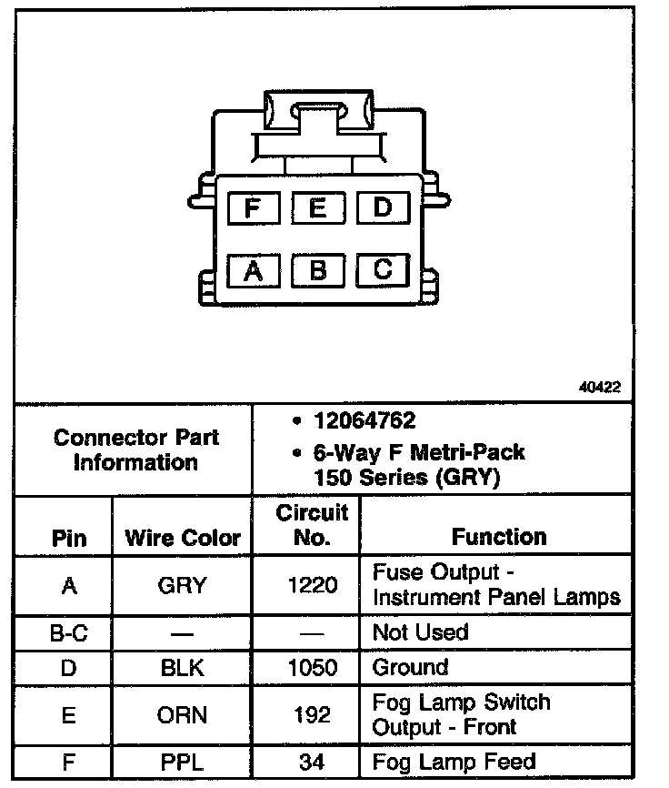Fog Lamp Switch Connector: