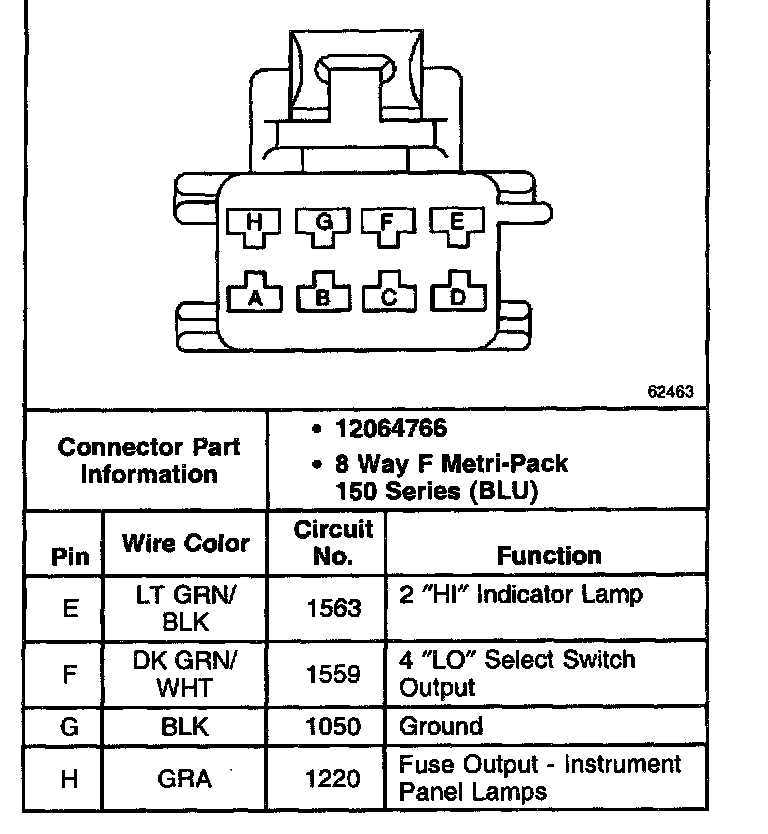 Transfer Case Shift Select Switch Connector C1