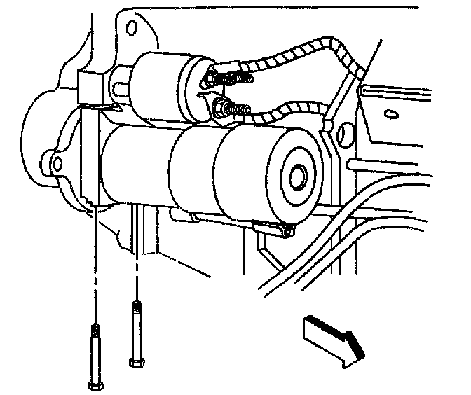 1. Install the starter and the inboard starter mounting bolt. Do not tighten.