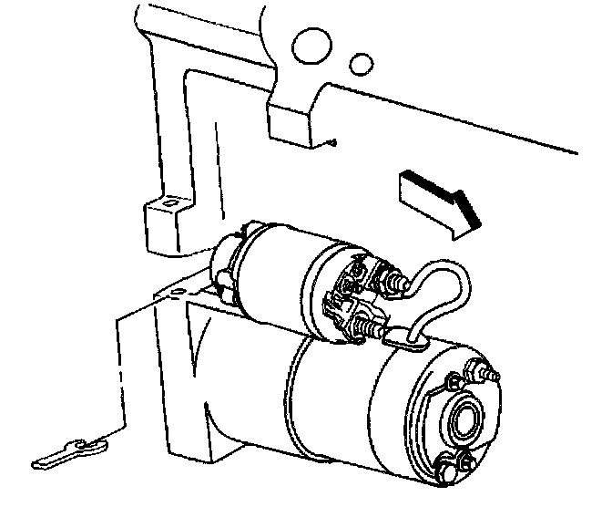 8. Remove the starter from the vehicle. Note the location of the shims, if equipped.