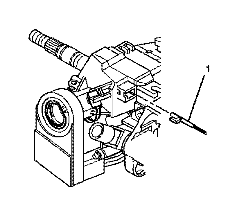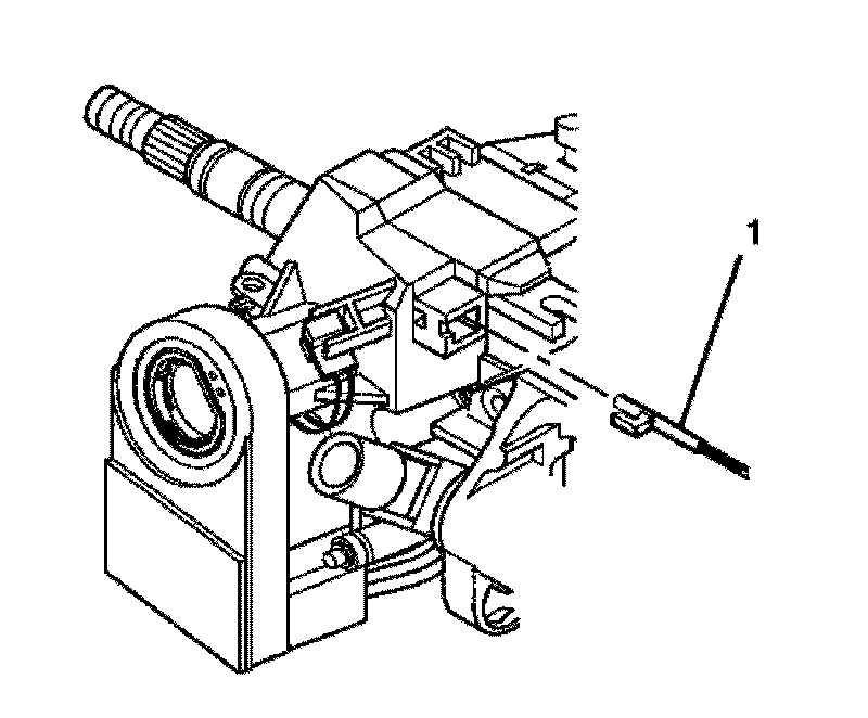 8. Insert a small screwdriver into the slot on the electronic lock module and push down on the park lock cable locking tab and remove park lock cable (1) from the electronic lock module (column shift only).