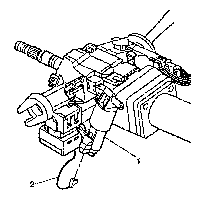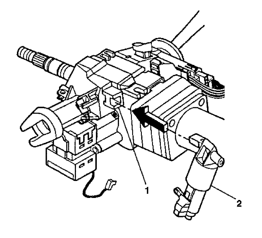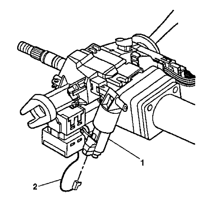 1. Install the electronic lock module (1) to the steering column housing.
