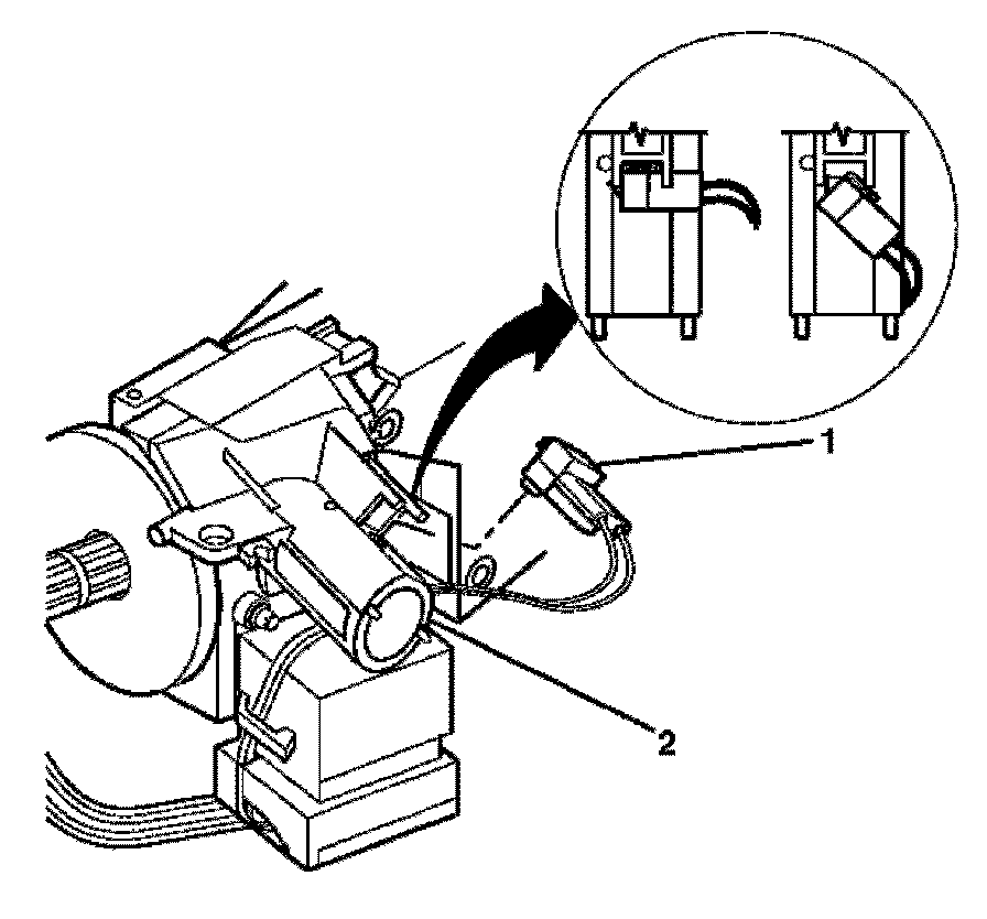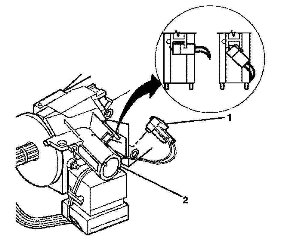 10. Unsnap the electric park lock (2) off of the electronic lock module (1) (floorshift only).