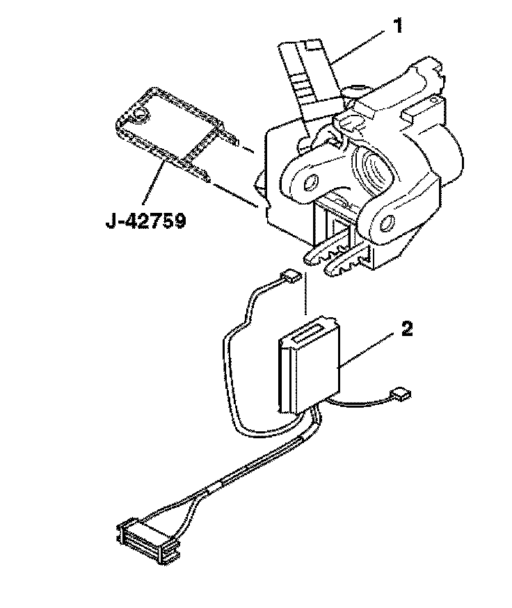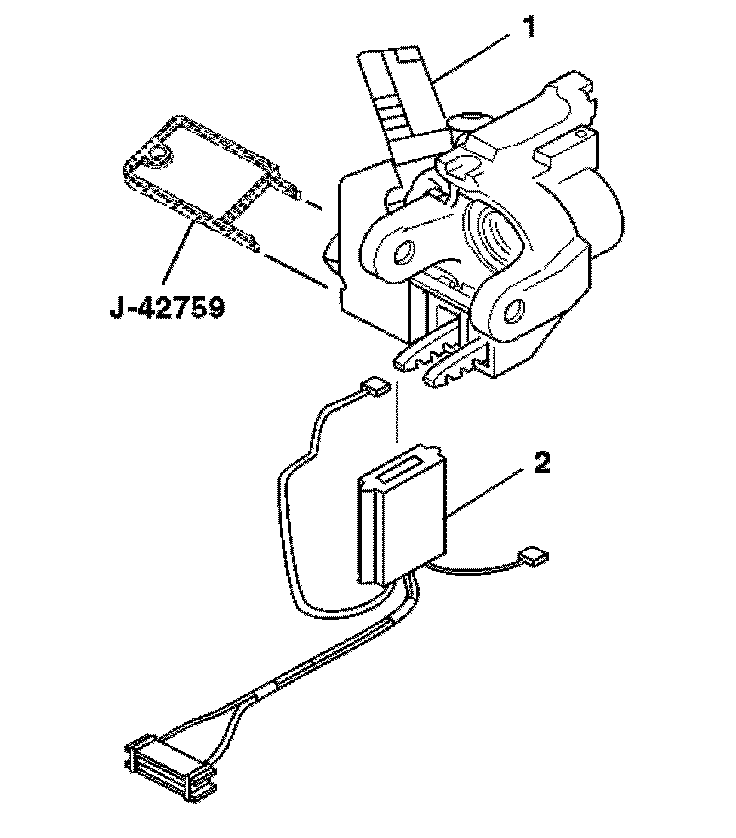 13. Disconnect the ignition switch (2) from the electronic lock module using the J-42759.
