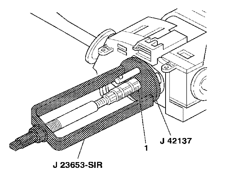 12. Remove the J 23653-SIR from the steering column shaft.