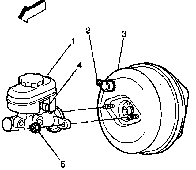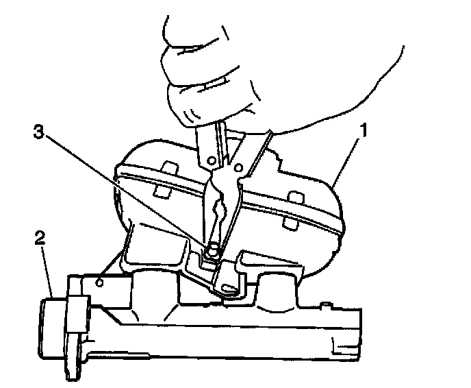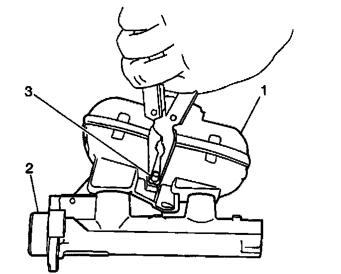 2. Remove the fluid level sensor (3). Use needle nose pliers in order to compress the sensor locking tabs at the inboard side of the master cylinder reservoir.