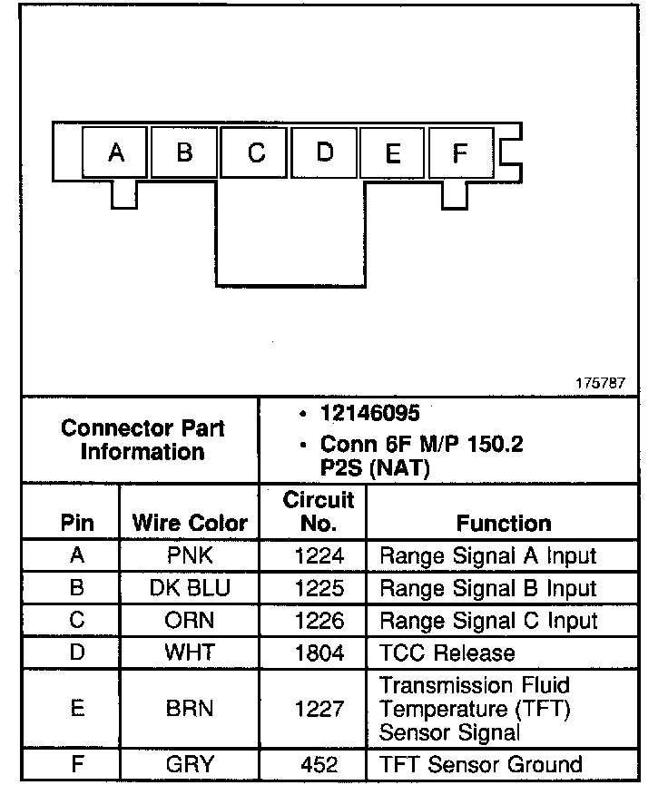 Automatic Transmission Fluid Pressure Manual Valve Position Switch Connector, Wiring Harness Side