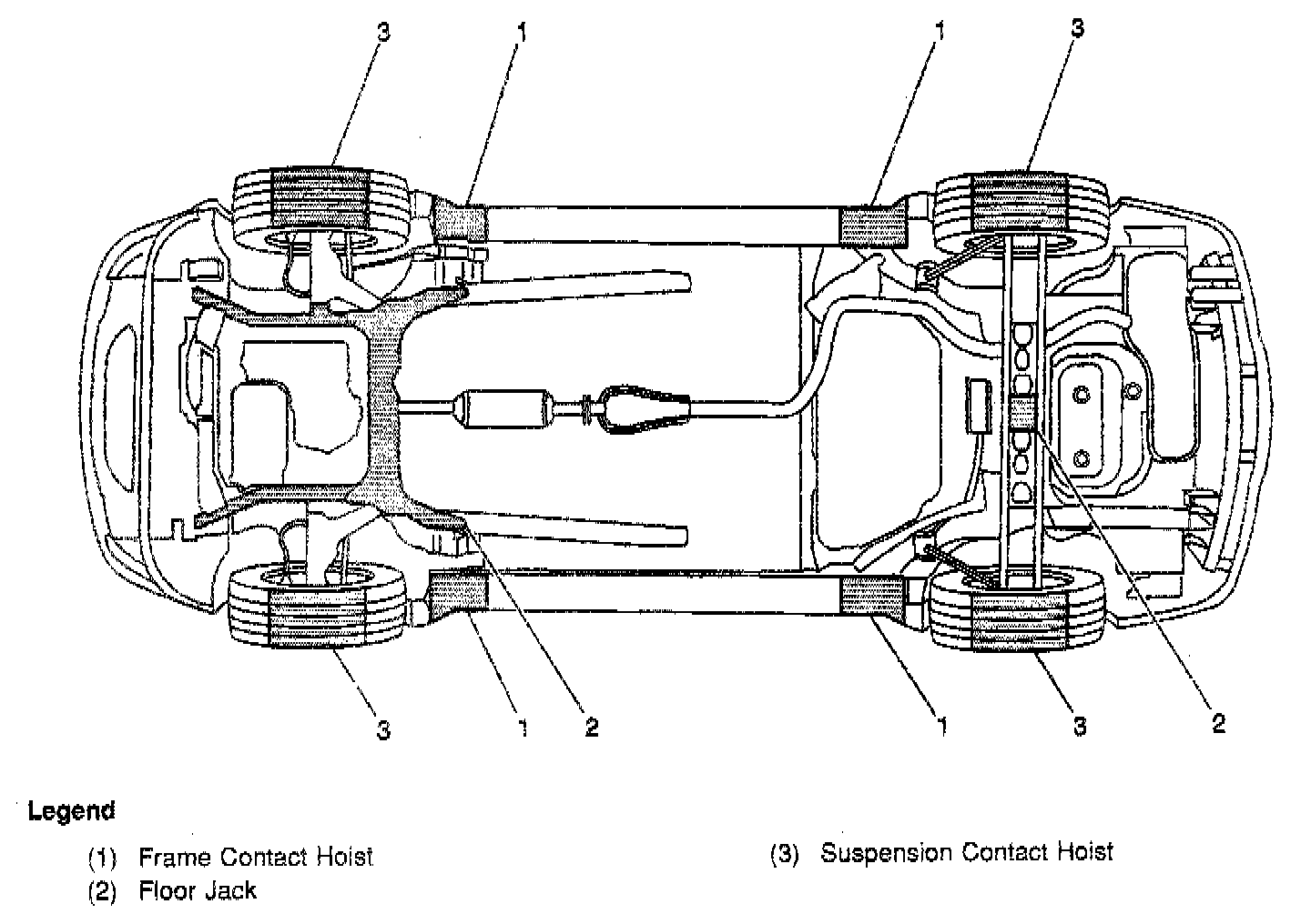 If you use any other hoisting methods than those called out, take special care not to damage the fuel tanks, the exhaust system or the underbody.