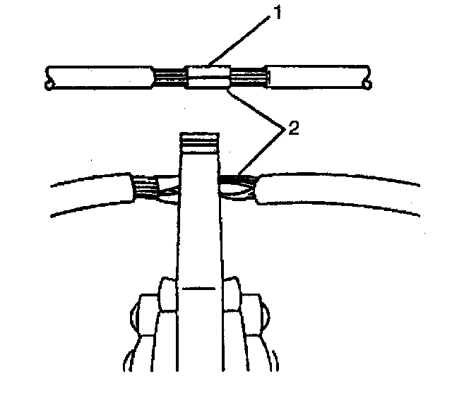 ^ Ensure that each splice is at least 40 mm (1.5 in) away from other splices, harness branches and connectors. This helps prevent moisture from bridging adjacent splices and causing damage.