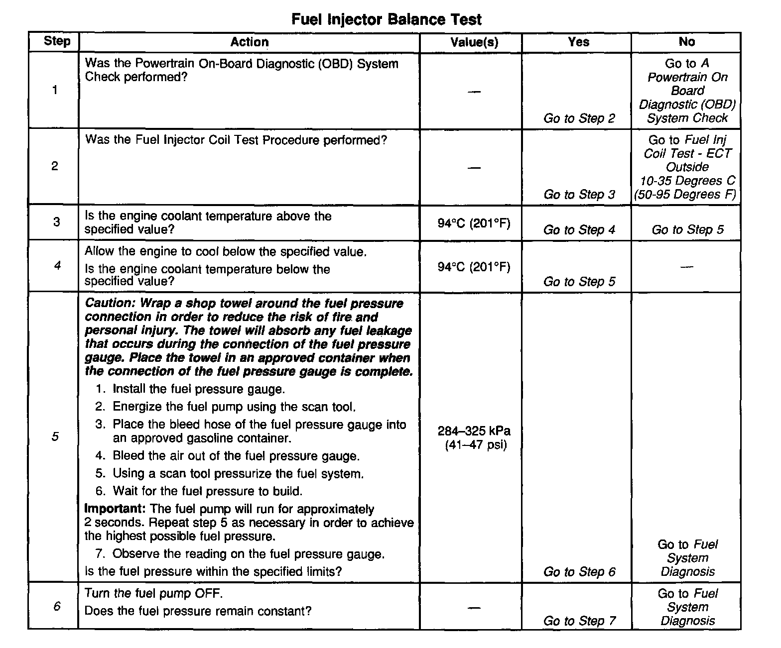 4. The Engine Coolant Temperature must be below the operating temperature in order to avoid irregular fuel pressure readings due to Hot Soak fuel boiling.