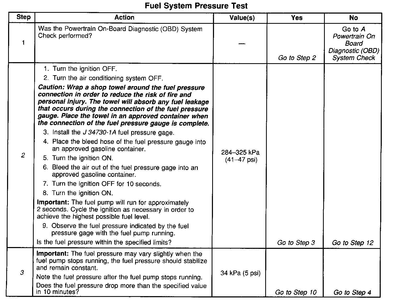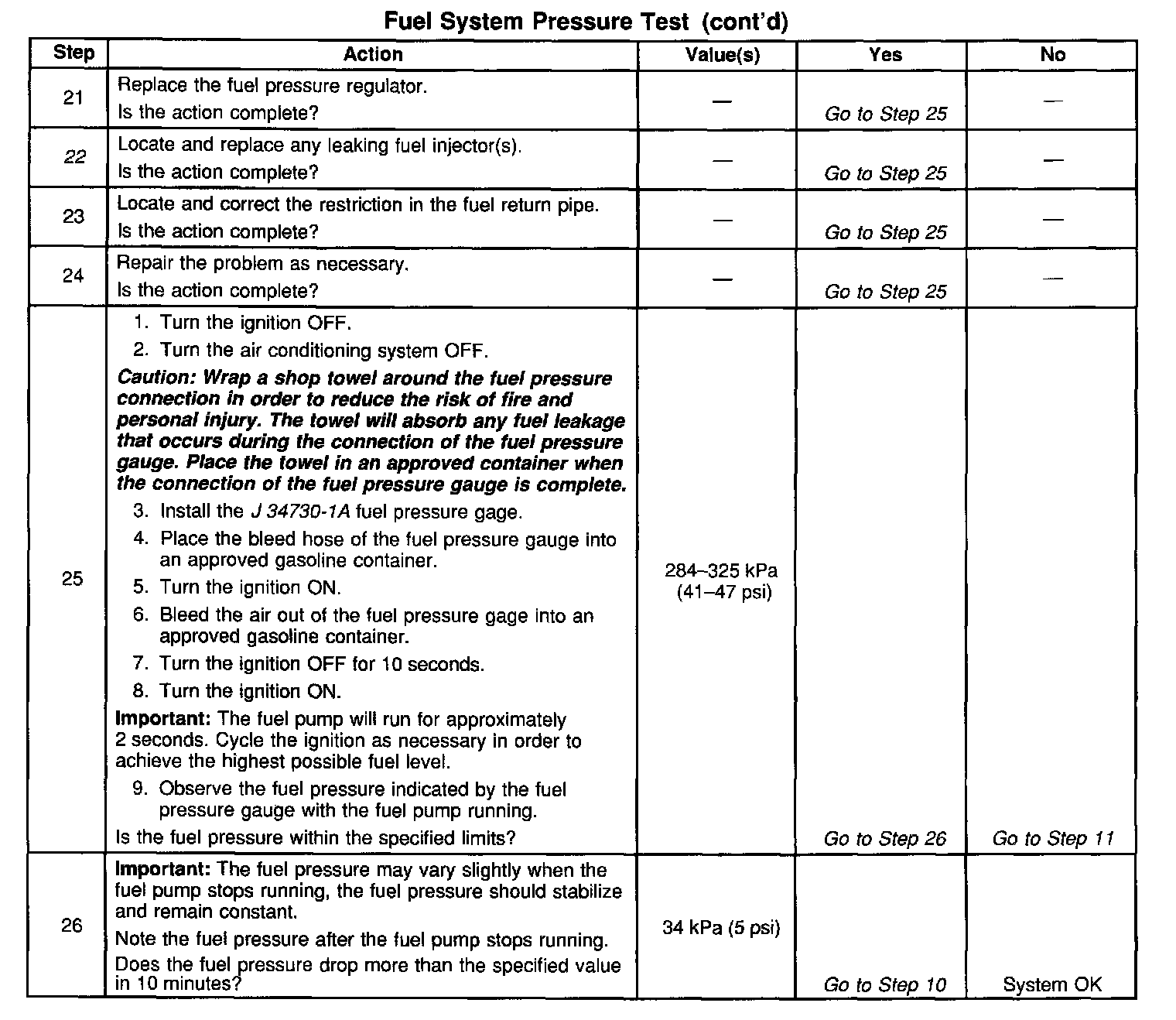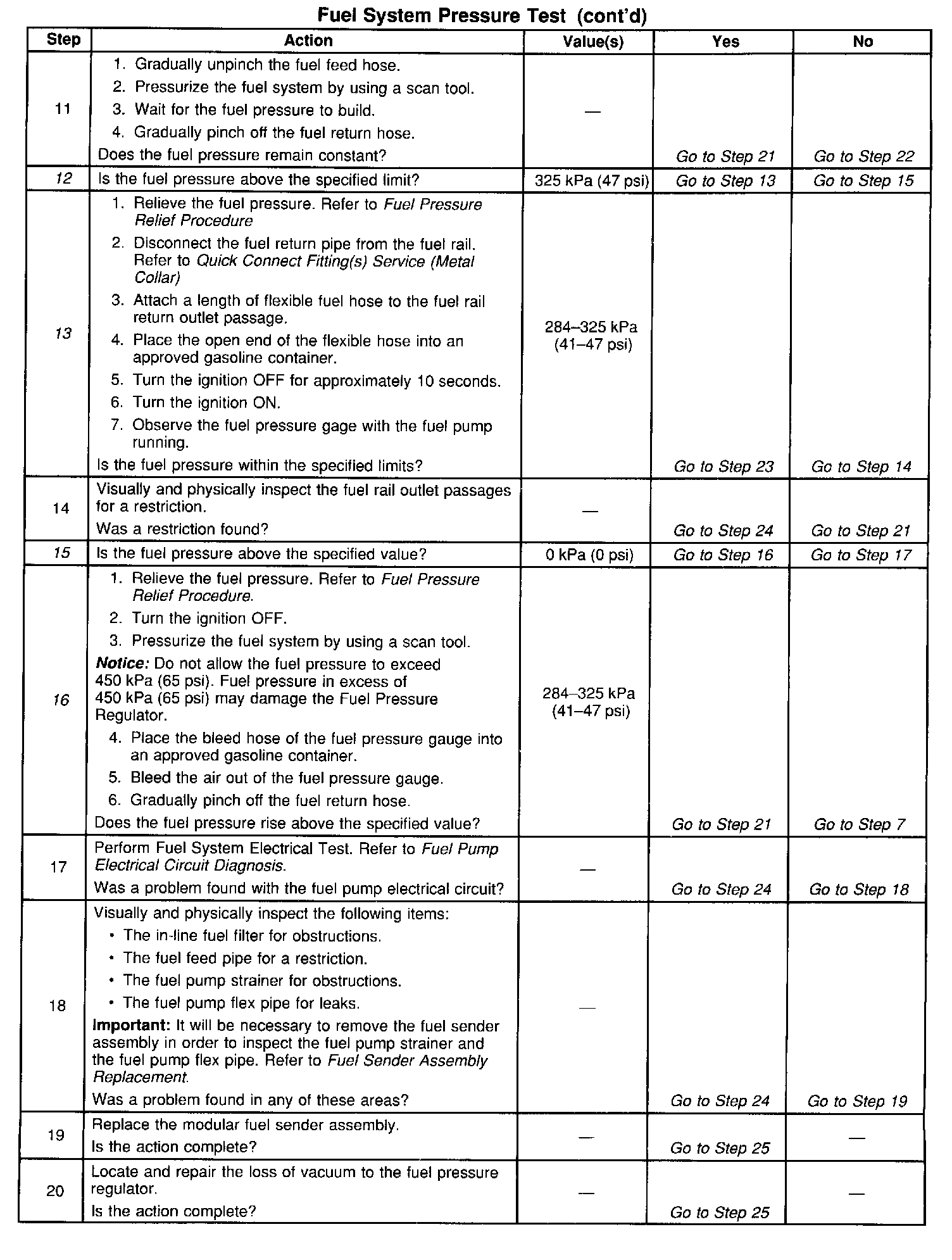 13. This test determines if the high fuel pressure is due to a restricted fuel return pipe or if the high fuel pressure is due to a faulty fuel pressure regulator.