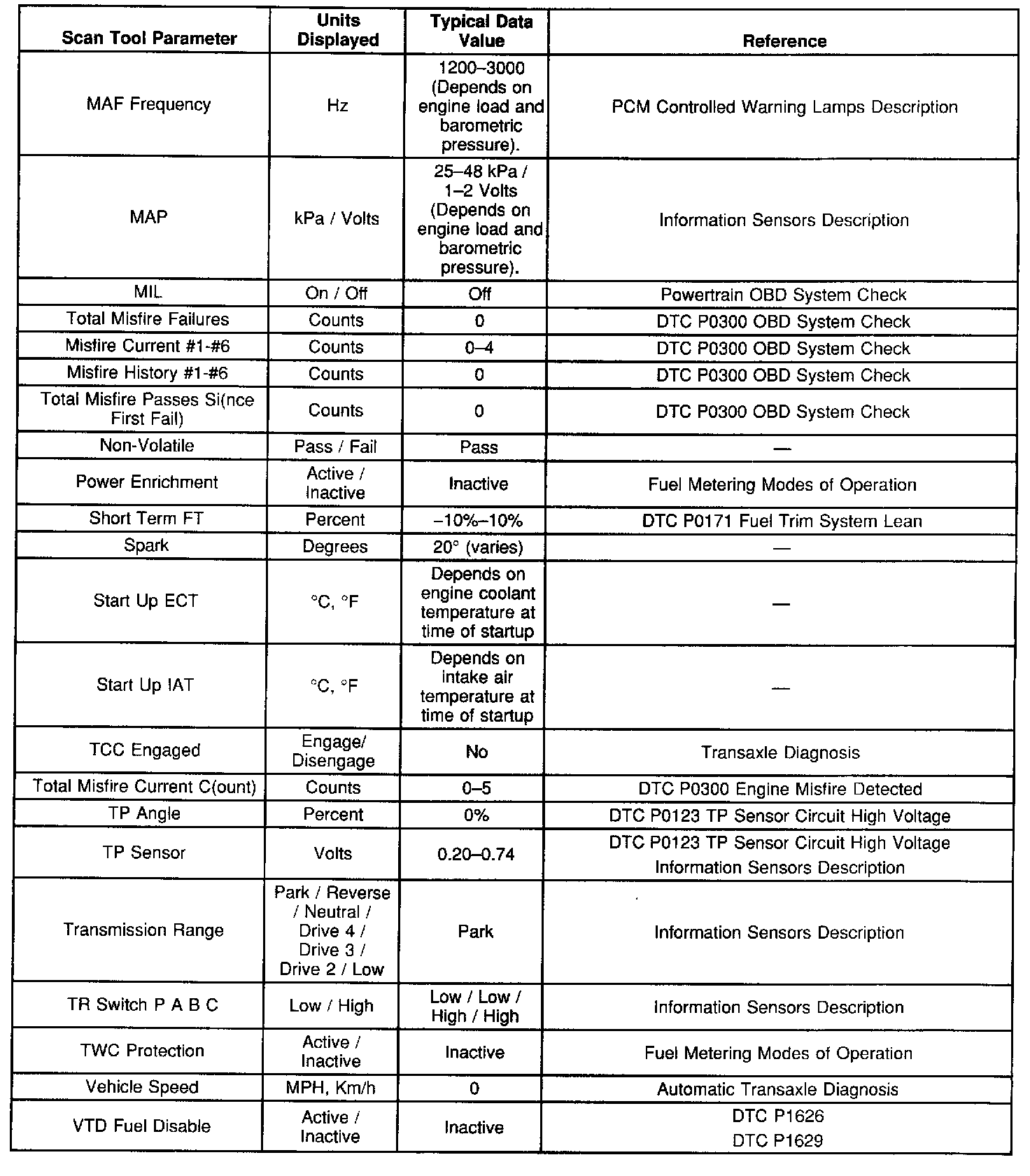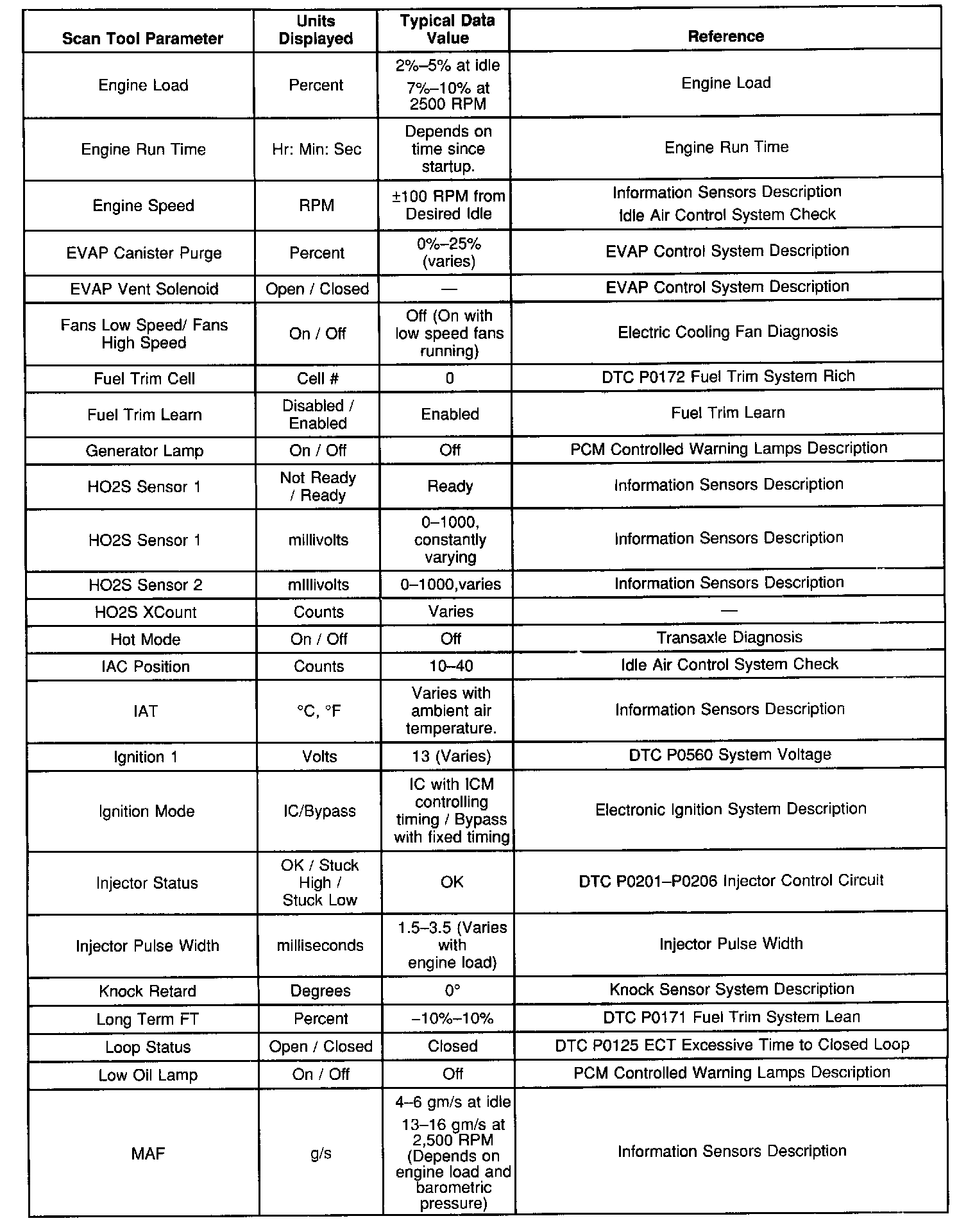 Scan Tool Data List - Powertrain System